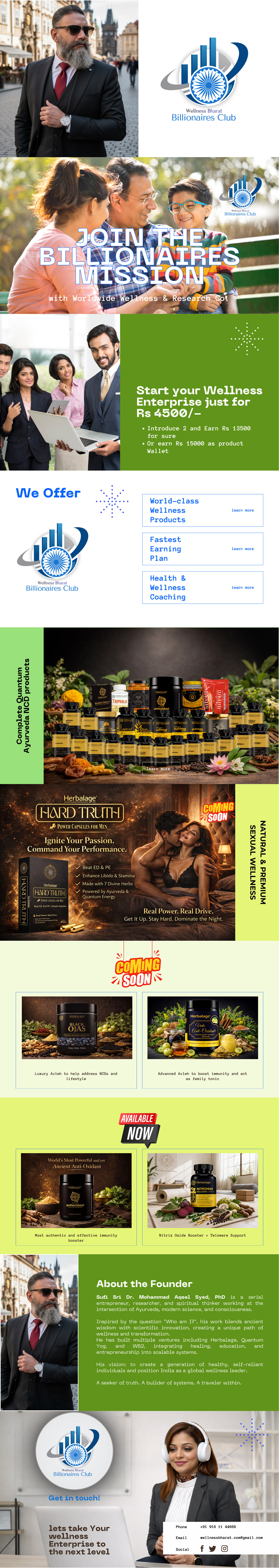 Wellness Bharat has a great combination of highly rewarding marketing plan, world class result oriented products and experienced management. The sky is the limit in Wellness Bharat as the company offers unparalleled growth opportunities. I truly believe this is the future of wellness industry in India.